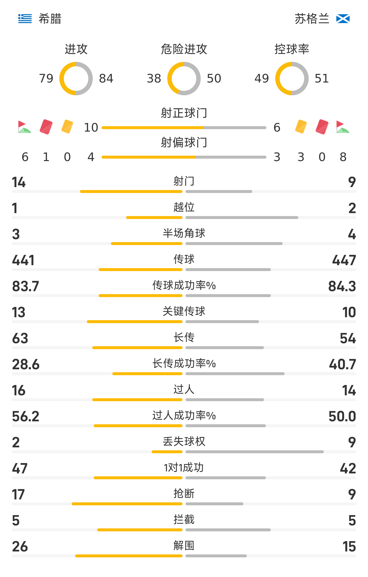 希腊首发阵容:1-弗拉乔迪莫斯、21-齐米卡斯、5-雷索斯、2-瓦贾尼迪斯、3-库利埃拉基斯、11-巴克斯塔斯、6-库尔贝利斯、10-斯佐利斯(90’9-科斯托拉斯)、19-卡雷萨斯(76’7-马苏拉斯)、8-莫扎基蒂斯(90’17-哈济迪亚科斯)、14-帕夫利迪斯(43’18-泰特)