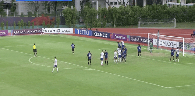 36’敲山震虎!曼谷联获得自由球机会,乍卡攀主罚攻门被挡出端线