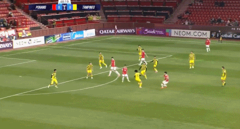 87’赵尚赫跟进射门破门,浦项铁人扳平赛果分,暂1-1淡滨尼流浪者
